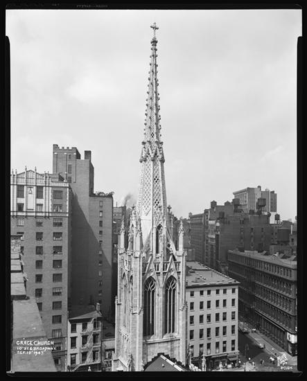 10th Street and Broadway. Grace Church, looking N.W. to tower and spire.