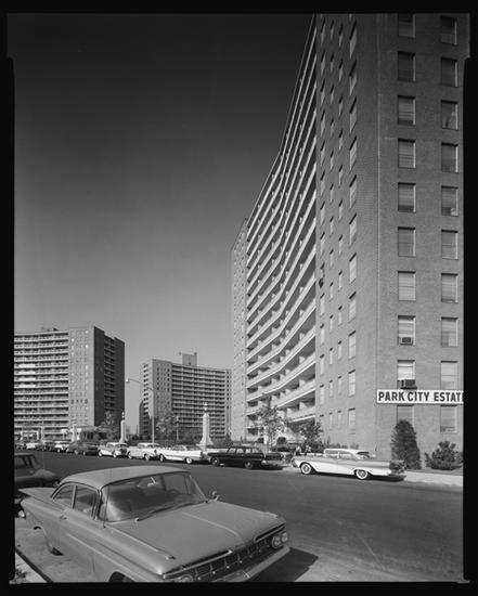Long Island Expressway. Park City Estates, lower part of S.W. building and two other buildings.