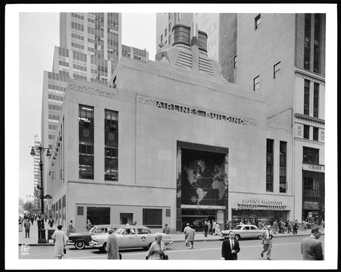 42nd Street and Park Avenue, S.W. corner. Airlines Terminal Building, general view from street, with Automat.