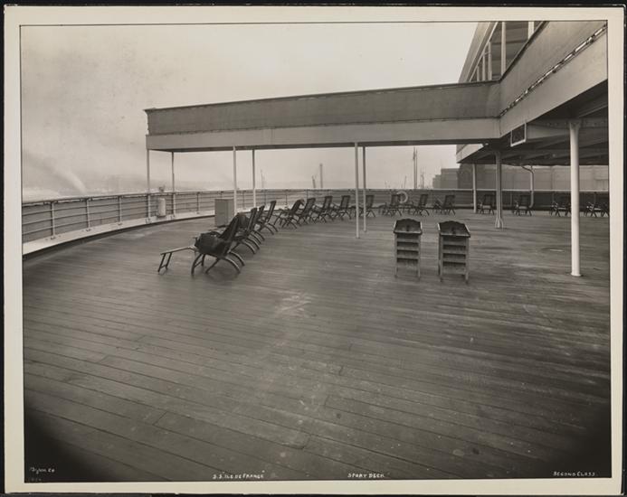 French Line, S.S. "Ile de France", Second Class, Promenade Deck.