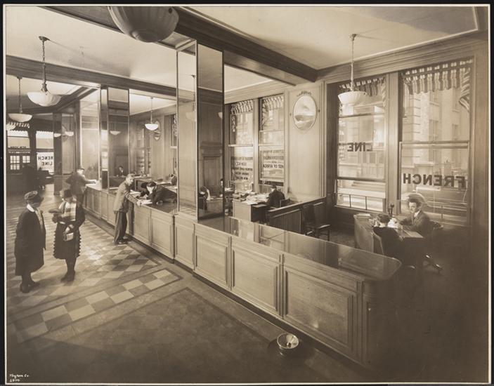 French Line, 19 State Street, Interior, Passenger Dept. Looking East from Corner Entrance.