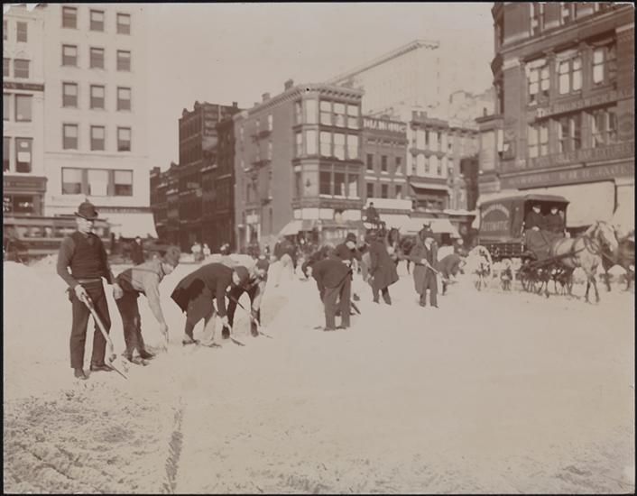 Snow Scenes, Blizzard, Street Scenes in New York City.