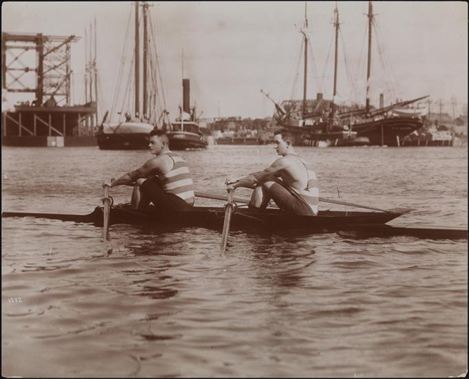 Numbered on neg. | Photographer's stamp on verso, including credit line and permission to publish, followed by "from Healy" in pencil. | "Jack Nagle and Fred Hawkins" pencilled on verso of similar pri