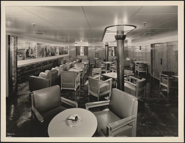 S.S. "Nieuw Amsterdam", 5th Street, Hoboken, N.J., Tourist Class, Smoke Room.