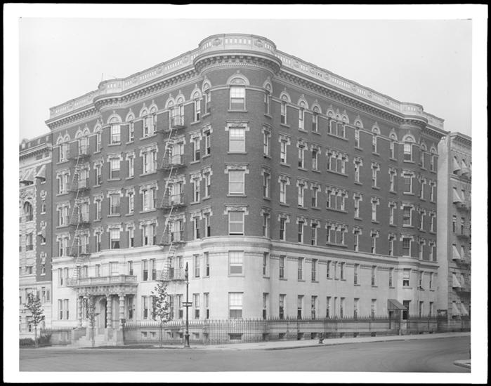 Riverside Drive at the corner of West 94th Street. Irving Arms Apartment House.