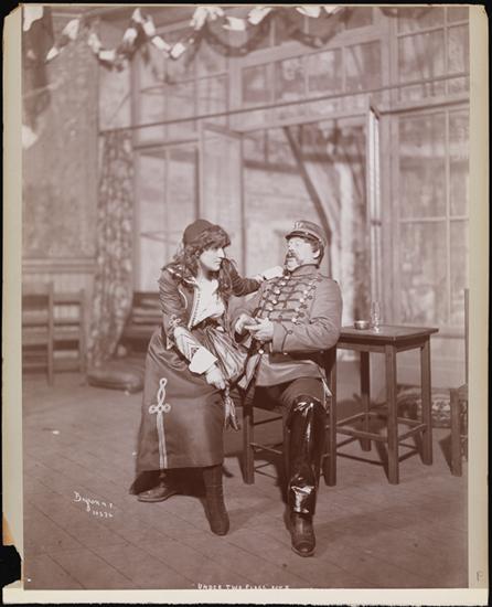 A scene from Paul M. Potter's play "Under Two Flags," presented by Charles Frohman and featuring Blanche Bates as Cigarette.
