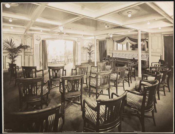 French Line, S.S. "Roussillon" Pier 99 North River First Class Interior, Interior Stage of Children's Theatre.