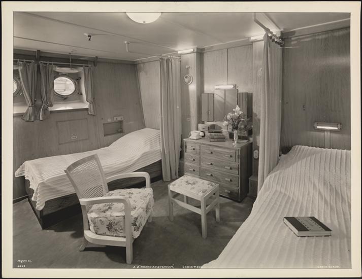 S.S. "Nieuw Amsterdam", 5th Street, Hoboken, N.J., Tourist Class, Inside 3 Bed Cabin #707 with Bathroom.