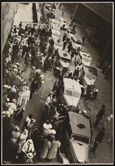 French Line, 610 Fifth Ave., "Normandie" Leaving Pier #88 N.R., Pier Scenes, Friends Waiting for Passengers.
