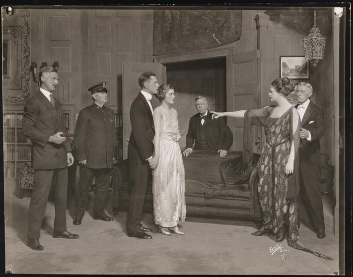 [Marie Goff as Ruth Jordan, George Backus as Judge Robert Clayton, and Elise Barlett as Molly in "At 9:45".]