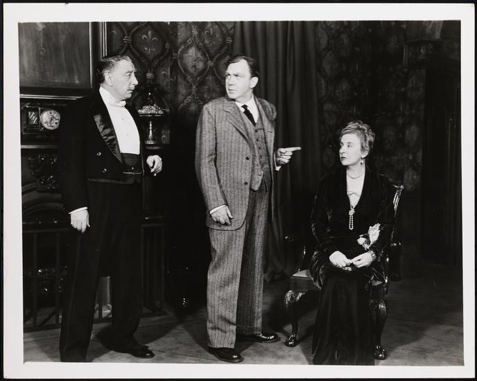 [Brian Aherne as John Hampden, Melville Cooper as Dr. Skillingworth and Ursula Jeans as Stella Hampden in "Escapade".]