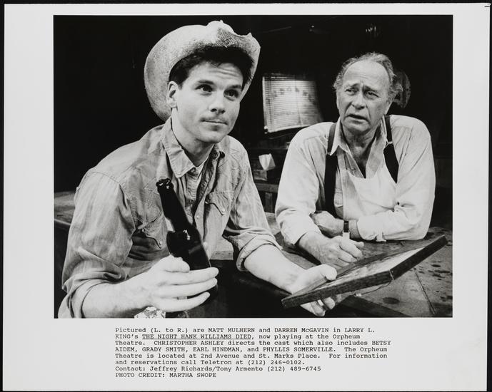[Earl Hindman as Sheriff Royce Landon Jr. and Darren McGavin as Gus Gilbert in "The Night Hank Williams Died".]