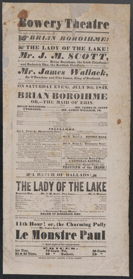Monday evening, May 18, 1857 will be presented an entire new historical drama in three acts, written by Mr. R. Johnston, called "Jacobe Leisler; or, New York in 1691"