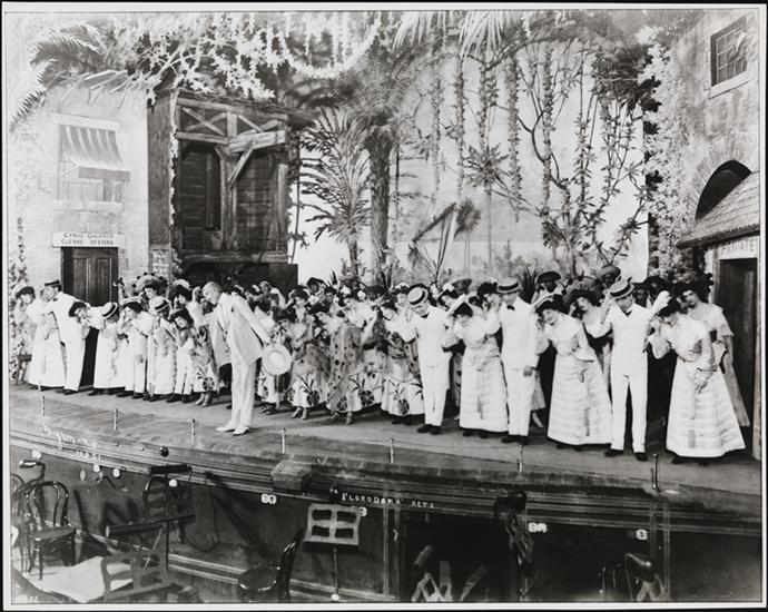 A scene from the musical "Florodora," book by Owen Hall and and music by Leslie Stuart presented at the Broadway Theatre, Broadway and 41st Street, New York City in 1900.