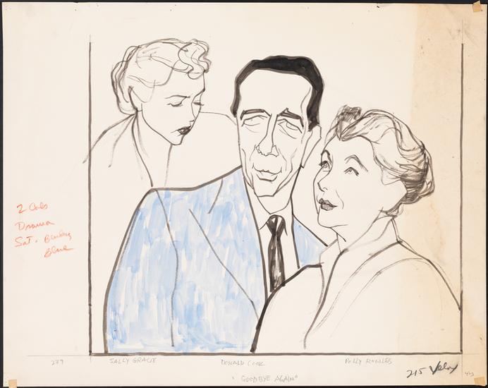 [Donald Cook as Oliver Casey, Glenda Farrell as Isabel Chamberlain and Cloris Leachman as Amy Grenville in "Masquerade".]