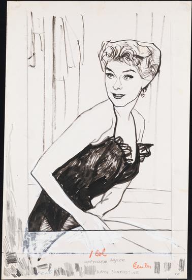 [Gretchen Wyler as Lola and Stephen Douglass as Joe Hardy in "Damn Yankees".]