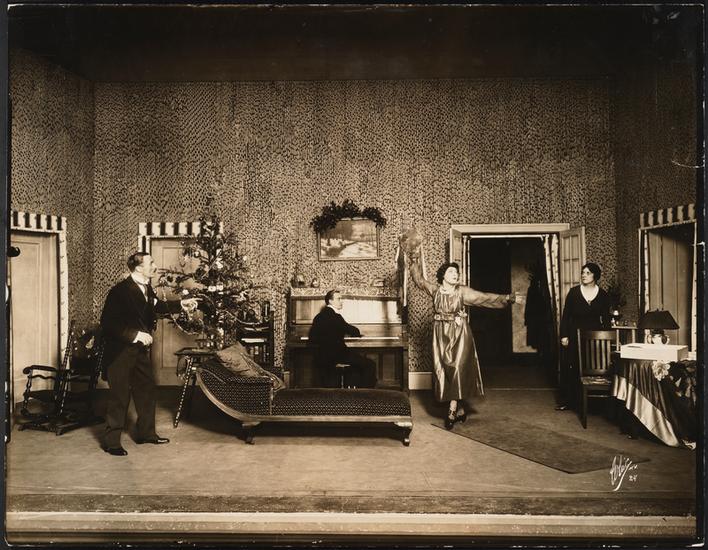 [Nazimova as Nora Helmer, Lionel Atwill as Torvald Helmer and George Probert as Dr. Rank in "A Doll's House".]