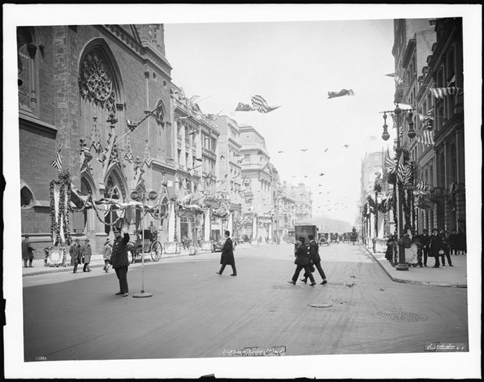5th Avenue looking South from 48th Street. Mayor's committee to welcome British and French War Commissions.