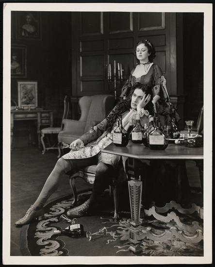 [Florence Eldridge as Miss Leonore Graves and Fredric March as His Excellency, General Leonidas Erosa in "Now I Lay Me Down to Sleep".]