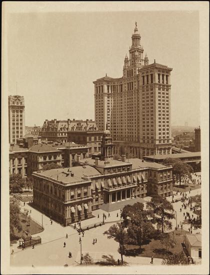 Municipal Building, Newspaper Row and City Hall Park, New York.