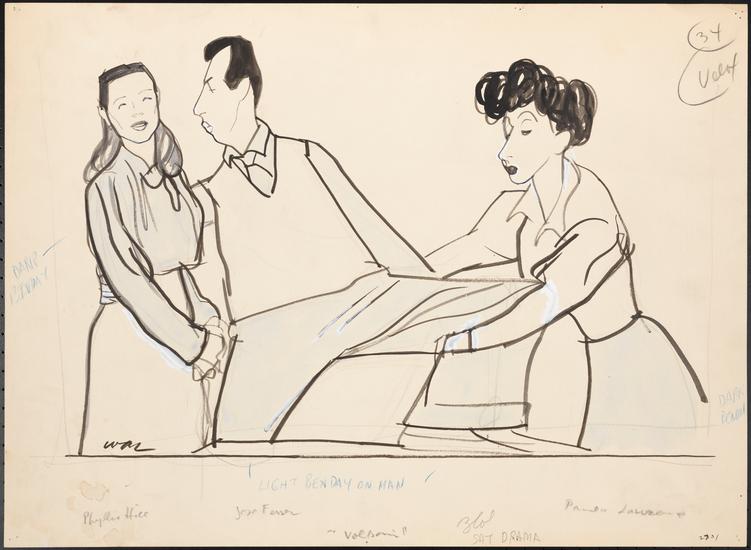 [Kenny Baker as Rodney Hatch, Mary Martin as Venus and Paula Laurence as Molly Grant in "One Touch of Venus".]