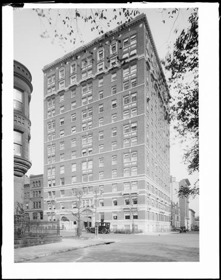 104th Street at the N.W. corner of West End Avenue. Apartment house.