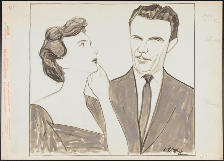 [Joan Tetzel as Daphne Randall and Zachary Scott as Neil Harding in "The Damask Cheek".]