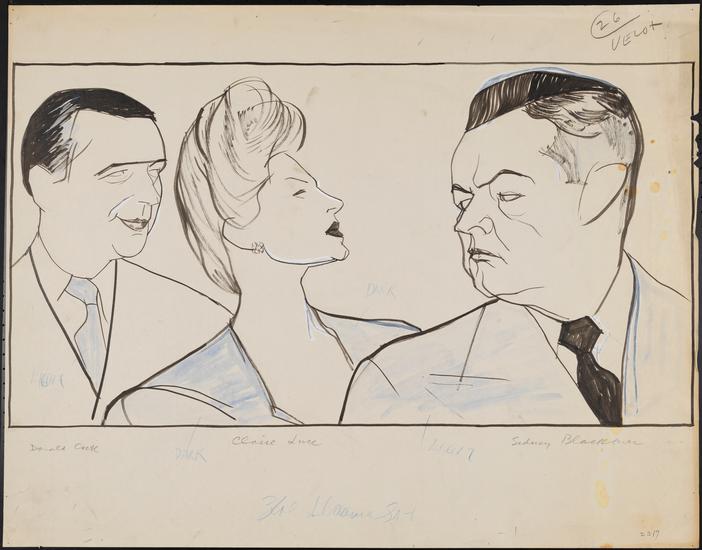 [Claire Luce as Katharina in "The Taming of the Shrew" and Robert Sterling as Charley Stewart and Sarah Churchill as Nancy Willard in "Gramercy Ghost".]