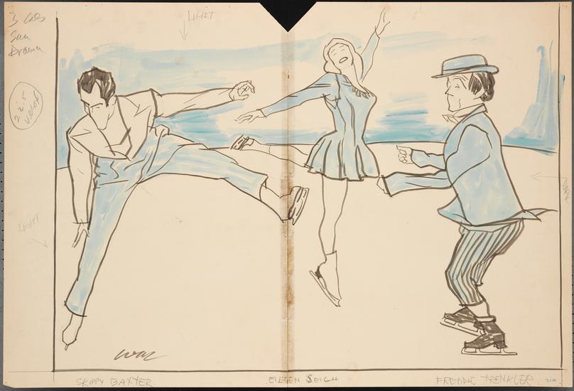 [Freddie Trenkler and the Caley Sisters in "Hats Off to Ice".]