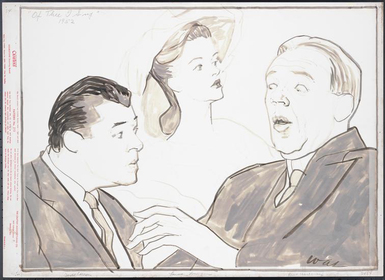 [Paul Hartman as Alexander Throttlebottom, Betty Oakes as Mary Turner and Jack Carson as John P. Wintergreen in "Of Thee I Sing".]