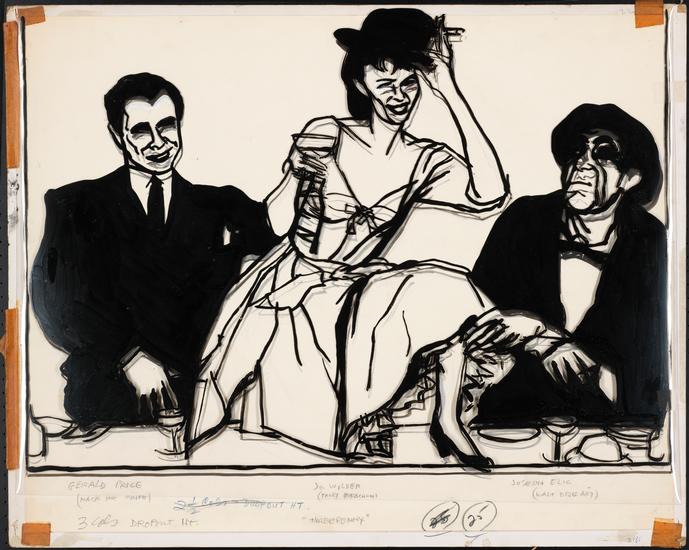 [Lotte Lenya as Jenny, Scott Merrill as Macheath, Jo Sullivan as Polly Peachum and Leon Lishner as Mr. Peachum in "Threepenny Opera".]
