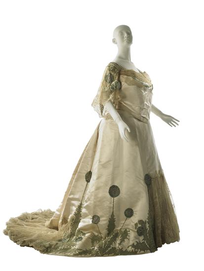 [Fancy dress ensemble, "Electric Light," worn by Mrs. Cornelius Vanderbilt at the 1883 Vanderbilt Ball]