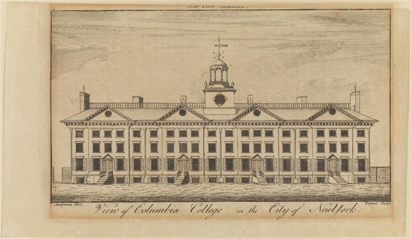 Columbia College, Murray Street, 1756 to 1857. Engraved by Balch, after drawing by Davis, in the New York Mirror, 1828.