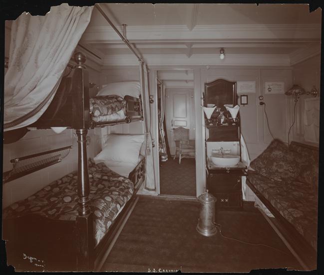 Bunk beds in a second class cabin on the S.S. "Caronia".