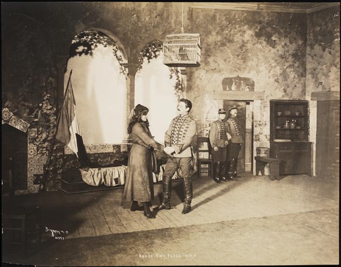 A scene from Paul M. Potter's play "Under Two Flags" presented by Charles Frohman in 1901 featuring Blanche Bates as Cigarette.
