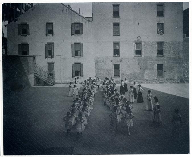 Dumbell excercise in play yard -- public school at Monroe and Market Streets.