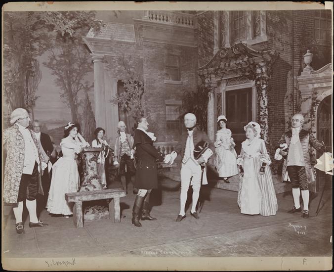 A scene from Edward E. Rose's play "Richard Carvel" featuring John Drew and Ida Conquest.