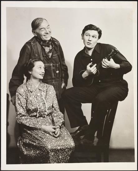 [Aline MacMahon as Betsy Graham, John Garfield as The Overland Kid, and Harry Carey as Ed Peeto in "Heavenly Express".]