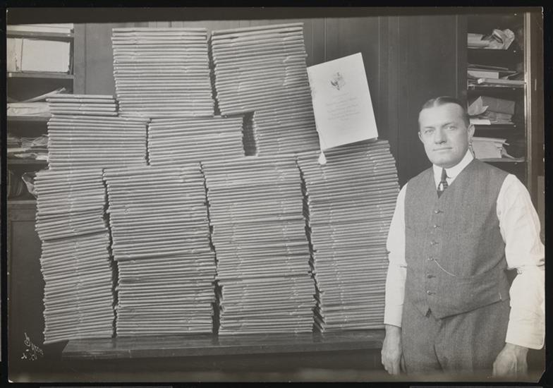 Portrait of Frederic Lamond Making a "Duo Art Piano" Record, Mr. Woods Stands Next to the Piano.