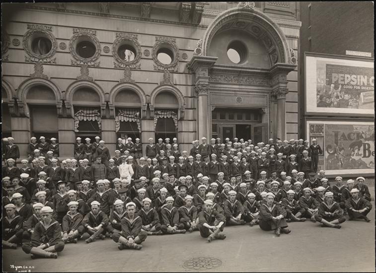 College of Pharmacy, 115 E. 68th St., Group of Sailors in Front of Building.