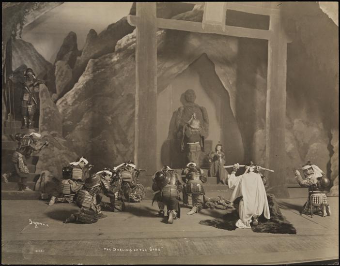 Scene from "Darling of the Gods" featuring Blanche Bates, George Arliss and Robert Haines.