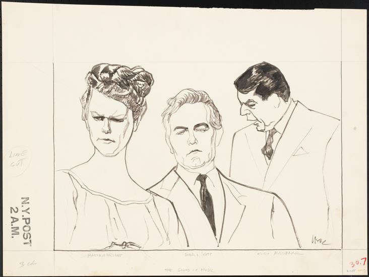 [Patricia Neway as The Mother Abbess, Mary Martin as Maria Rainer and Theodore Bikel as Captain Georg von Trapp in "The Sound of Music".]