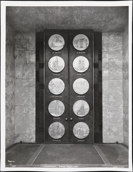 [S.S. "Normandie", Dining Salon Doors, Cabin Class.]