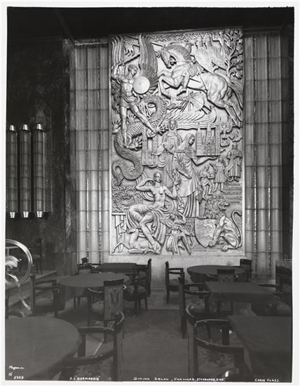 French Line, S.S. "Normandie", Cabin Cl., Panel in Dining Salon, Port Side Aft.