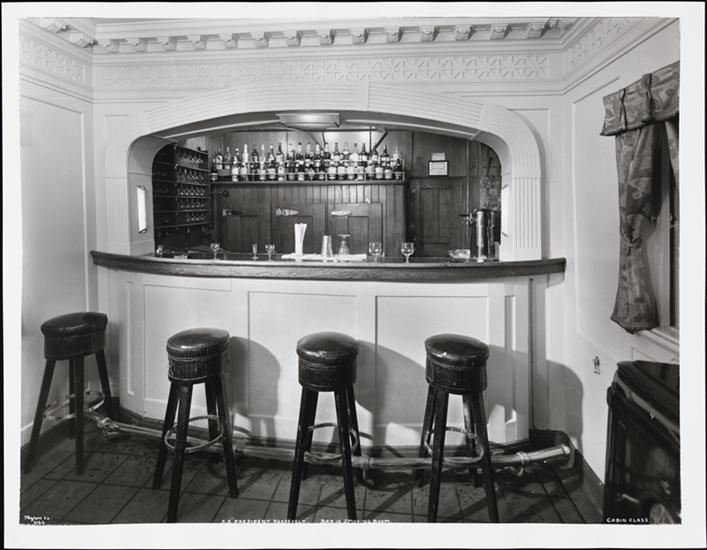 United States Lines, S.S. "President Roosevelt", Pier #59 N.R., Cabin Class, Bar in Smoking Room.
