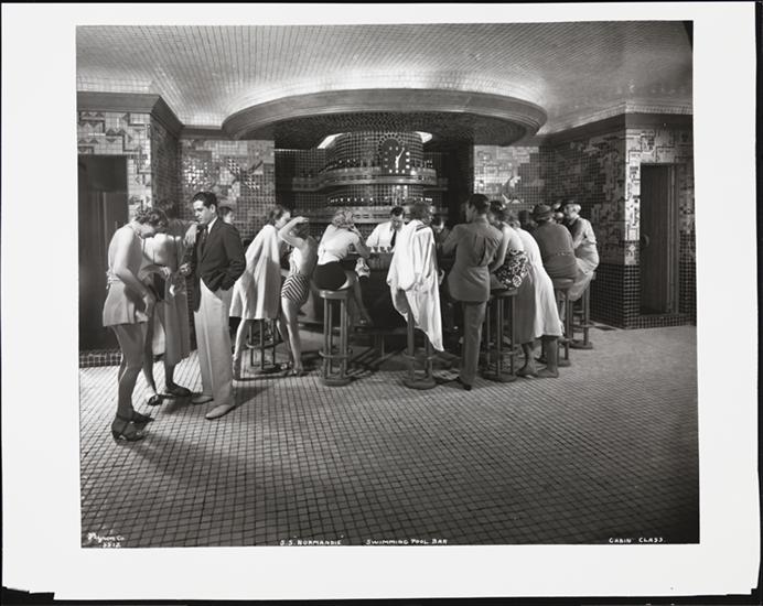 [S.S. "Normandie", Swimming Pool Bar, Cabin Class.]
