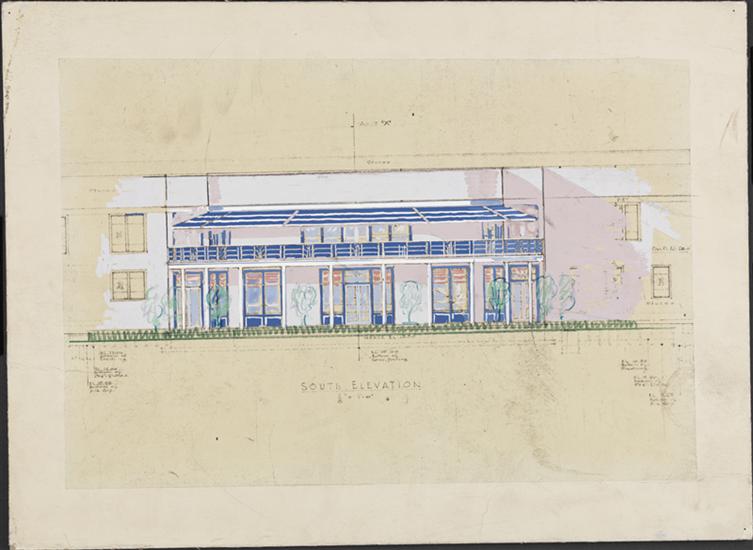 [Colored drawing of views of concession stands, New York World's Fair].