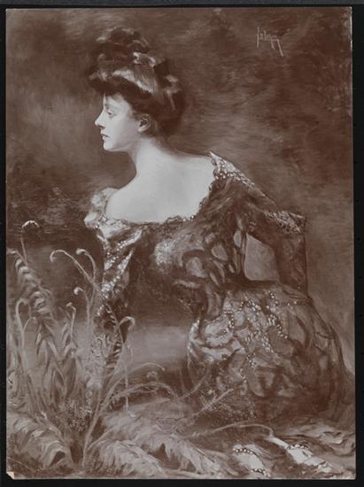 Photograph of a portrait painting of a woman; Signed "N.D. Latham."