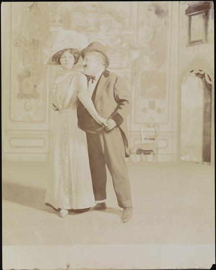 A scene from Weber's Burlesque of the Henry W. Savage production of Lehar's "The Merry Widow" and a production of "The Devil," presented at Webers Theatre in 1909.