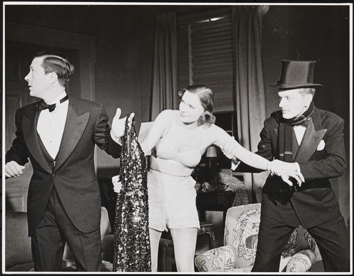 [Royal Beal as Dave Hamlin, Allyn Morgan Joslyn as Morgan (Muggy) Williams, and Arlene Francis as Eléna in "All That Glitters".]
